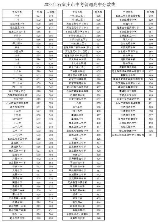 2024年石家庄各高中录取分数线还没公布,一般在每年7月20日前后公布分数线,为大家整理了2023年石家庄市中考普通高中录取分数线公布,录取分数线如下。