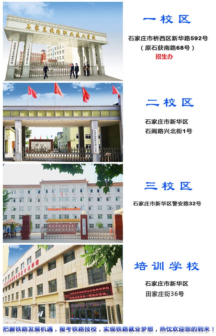 首先石家庄铁路学校是一所三牌一校的省级重点中专学校,也就是说石家庄铁路学校有三个全称分别是: